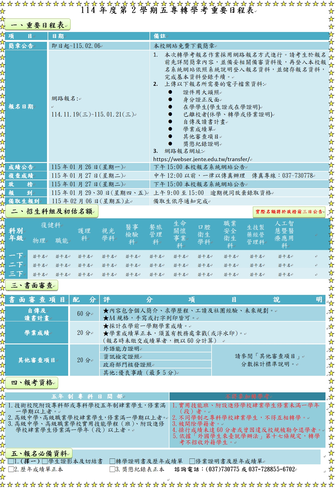 五專續招