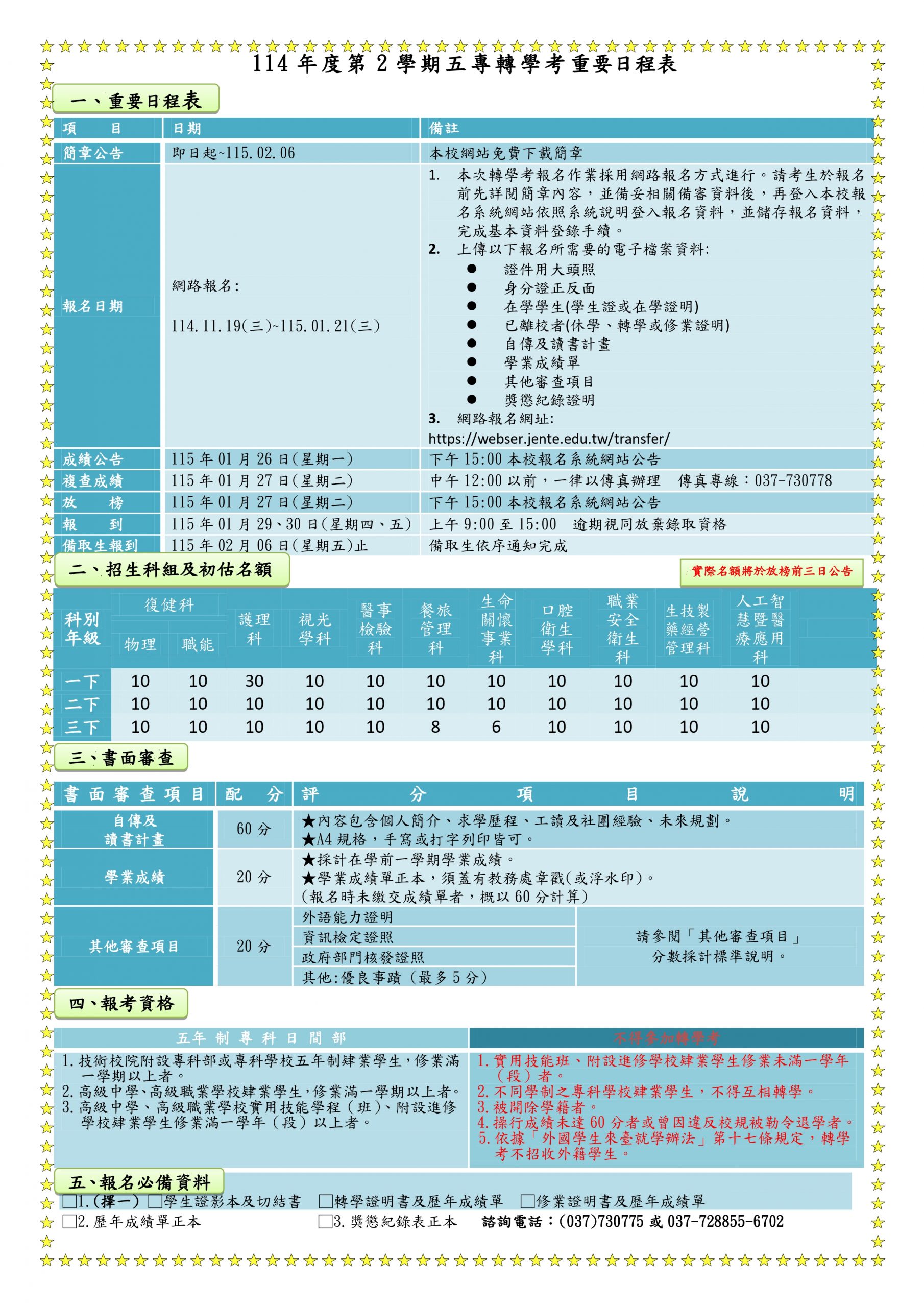 轉學考重要日程表